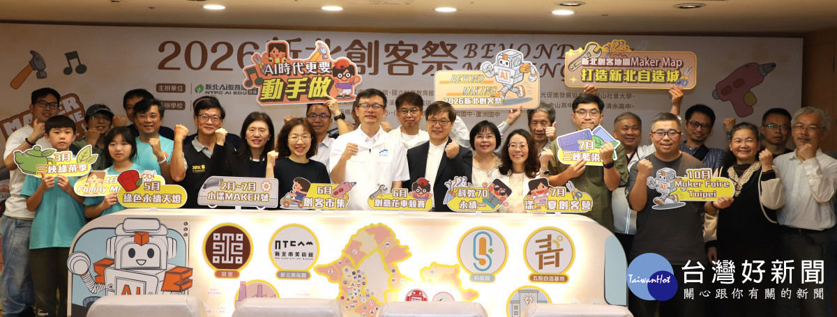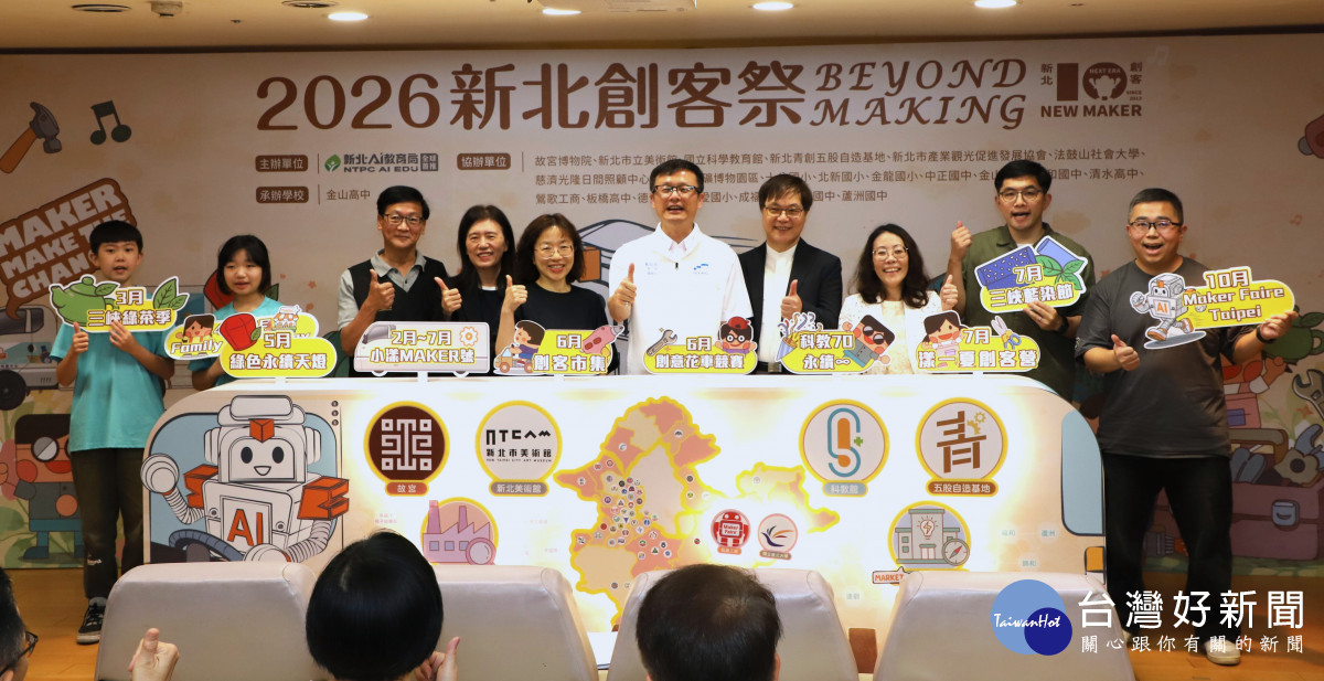 新北市今(10)日舉辦「Beyond Making 2026新北創客祭」起跑記者會,宣布10大系列活動全面展開。今年創客教育再升級,首度發布「新北創客地圖Map」,串聯故宮、國立科教館、新北市美術館、五股自造基地、觀光工廠、49所創客學校及12所科技中心等多元場域,讓創客學習從校園延伸到社區、從學生擴展到樂齡族群,展現全齡共享的創客教育行動力。