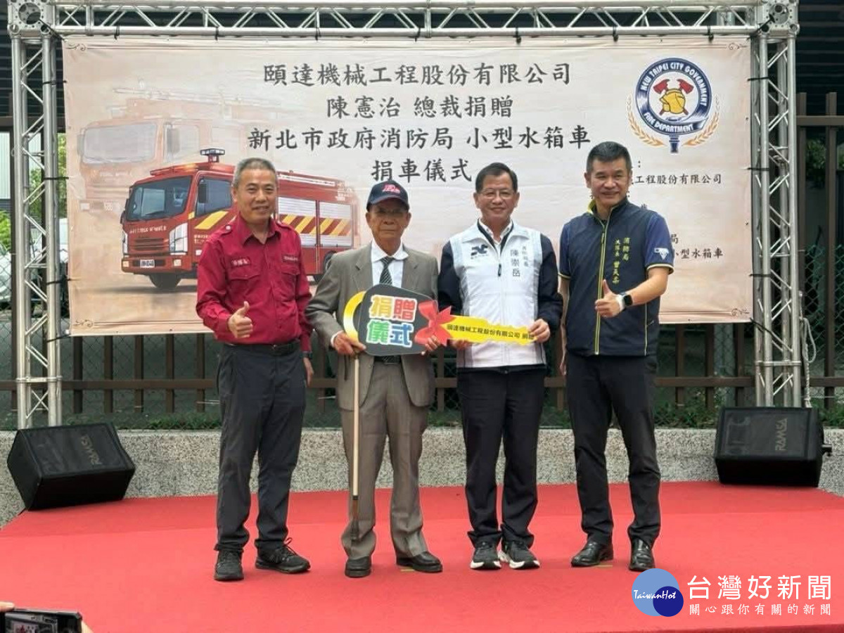 頤達機械工程公司總裁陳憲治先生成長於新北市新莊與迴龍交界地區,對家鄉懷抱深厚情感。雖然多年來在外打拚事業,始終心繫故里,關注地方發展與公共安全議題。此次基於回饋鄉里的初心,特別捐贈消防局第二救災救護大隊裕民分隊小型水箱消防車一輛及多項救災裝備器材。