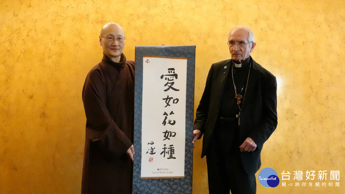 館方致贈心道法師所書的「愛如花如種」卷軸等深具靈性意義的結緣品。托瑪士等人表示,世界宗教博物館以具體空間呈現不同宗教的精神核心,對促進理解與和平具有重要意義。更對心道法師推動愛與和平、靈性生態等愛地球的志業深表佩服。