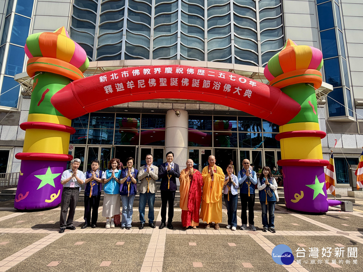 農曆四月初八佛誕節將至,為慶祝釋迦牟尼佛2570年誕辰,新北市佛教會今(19)日於三重綜合體育館隆重舉行「浴佛大典」。現場匯聚全市佛教宗派,邀請各界賢達與市民共沐佛恩,以清淨智慧之水,洗滌身心雜染,為世界與台灣平安虔誠祈福!