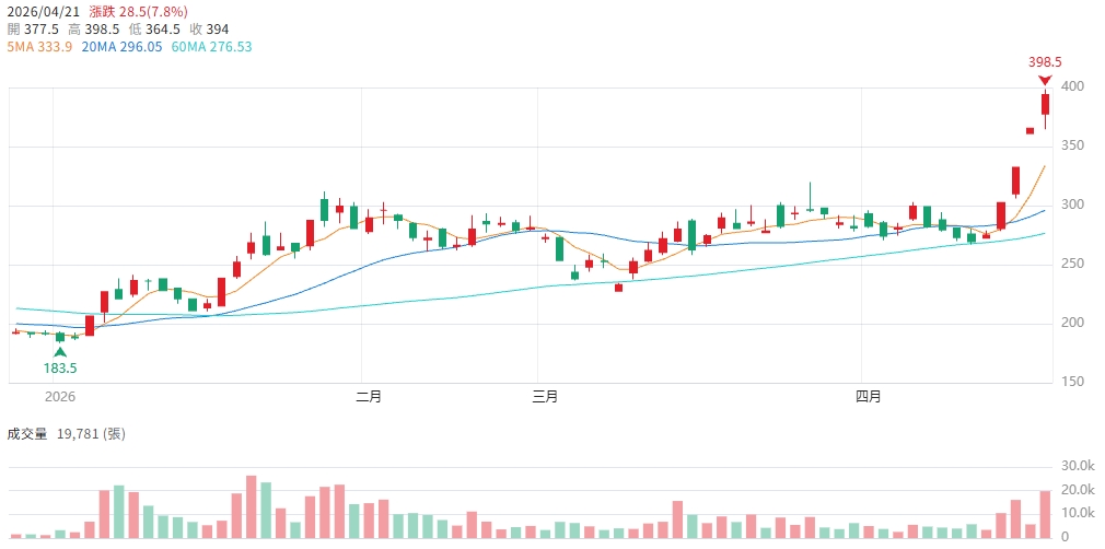 操作建議: 現有持股以377.5元開盤價為移動停利基準,守穩偏多續抱;跌破364.5元低點視為短線轉弱,宜降低倉位。新資金不追今日強勢收盤,等有效突破398.5元後順勢,或等拉回377.5至365.5元區間量縮止穩後再低接;中線以Q2月營收趨勢與毛利率改善速度作為加碼判斷依據。