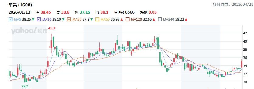 受惠國際銅價高位上漲及台電強韌電網需求,華榮第一季營收2.3億元,年增12%,帶動股價站上所有均線,漲幅30%。