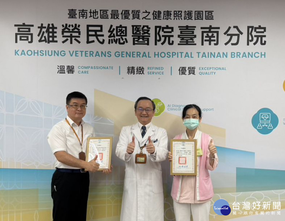 高雄榮民總醫院臺南分院23日舉行「廉政楷模」表揚活動,由院長鄭名芳親自主持頒獎,115年度由各單位推薦具有廉潔與效能事蹟之優秀員工進行參選,經審核選拔,由人事室醫務管理師曾慧玲及護理部副護理長蘇靜玲當選「廉政楷模」。