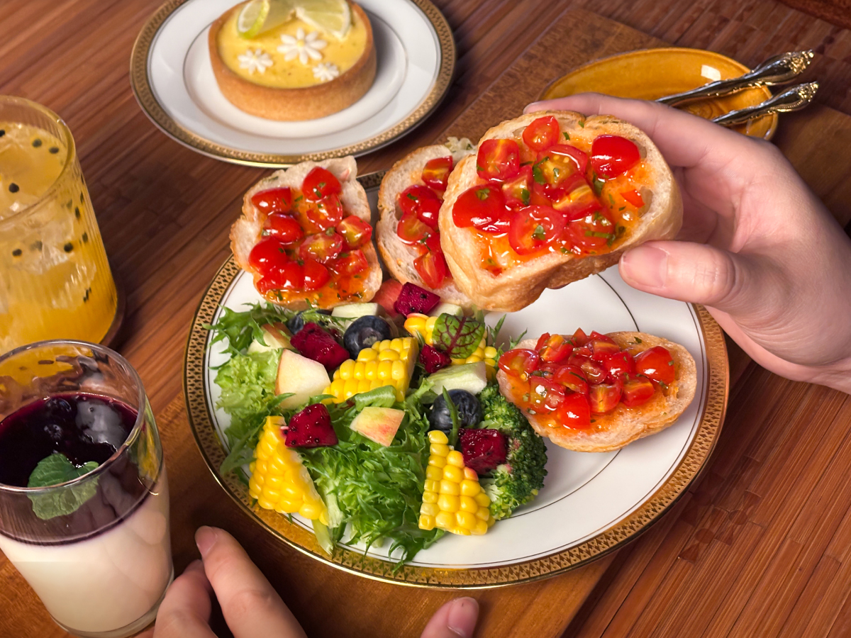 無二會所夏季限定「夏漪午茶」,用散發著穀物香氣的窯烤麵包佐鮮莎莎醬、清新爽口的時令果蔬輕沙拉開啟清爽初夏;主點心另外搭配了糖花檸檬塔、莓果奶酪和蜜釀百香氣泡飲,組成這套好看好吃又好拍的午茶,能在日式老屋中慢慢度過悠閒午後時光,還可以收集美美的季節詩籤,慢活系媽媽一定會喜歡!