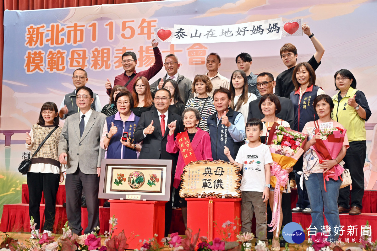 母親節將屆,為感念母親的辛勞並喚起社會大眾對家庭倫理的重視,新北市長侯友宜今(25)日於市府6樓大禮堂表揚56位模範母親。侯友宜致詞時感性表示,媽媽永遠是我們的最愛,一路陪伴子女長大、茁壯,當她們老時,換我們來陪伴她,並祝福全天下的媽媽們平安、健康、喜樂。