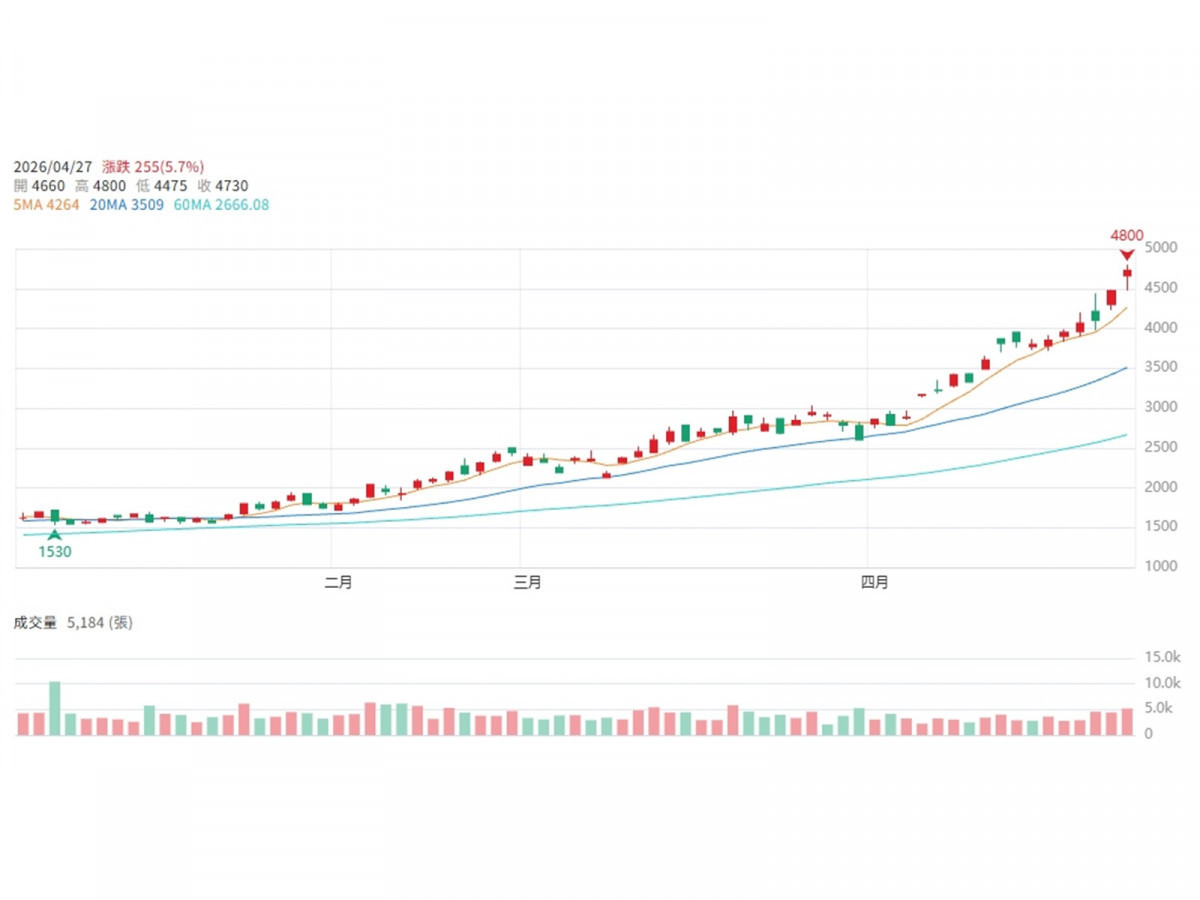 圖片來源:CMoney 台光電(2383) K線圖