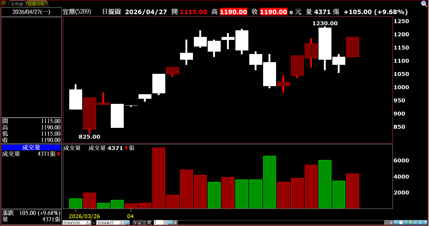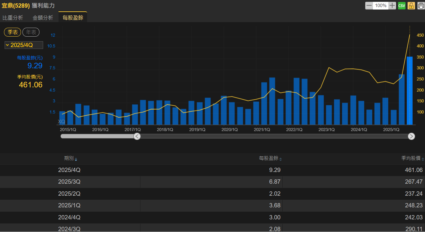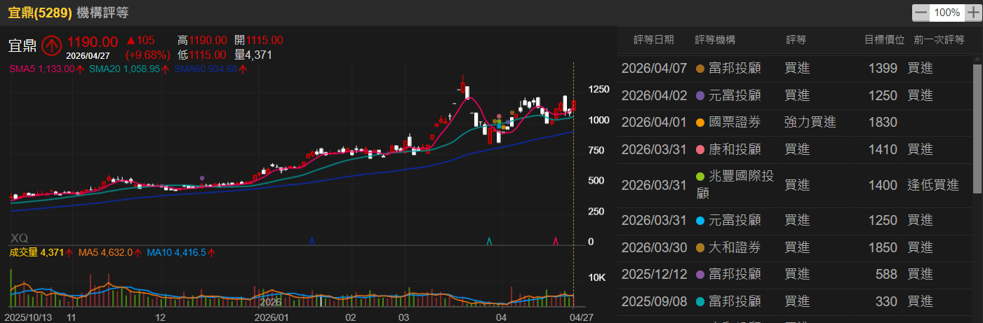 法人機構看好預估宜鼎年全年EPS可達201.93,與去年預估EPS 21.72相較之下,年增率多達829.70%