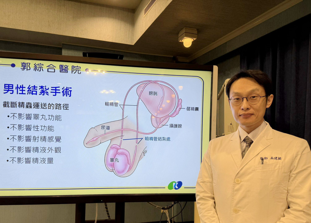 根據衛生福利部國民健康署統計,台灣男性結紮的比率已從民國97年的2.7%成長至105年的約7%,顯示男性參與避孕的觀念已倍數增長,避孕責任的分配正逐漸發生質變,郭綜合醫院泌尿科主任吳建穎醫師表示,許多男性對於在「命根子」動刀仍存有恐懼,透過現代化的「無刀口輸精管結紮術」,不僅手術時間短、傷口微小,更能確保在不影響性功能的前提下,達到長效且穩定的避孕效果。