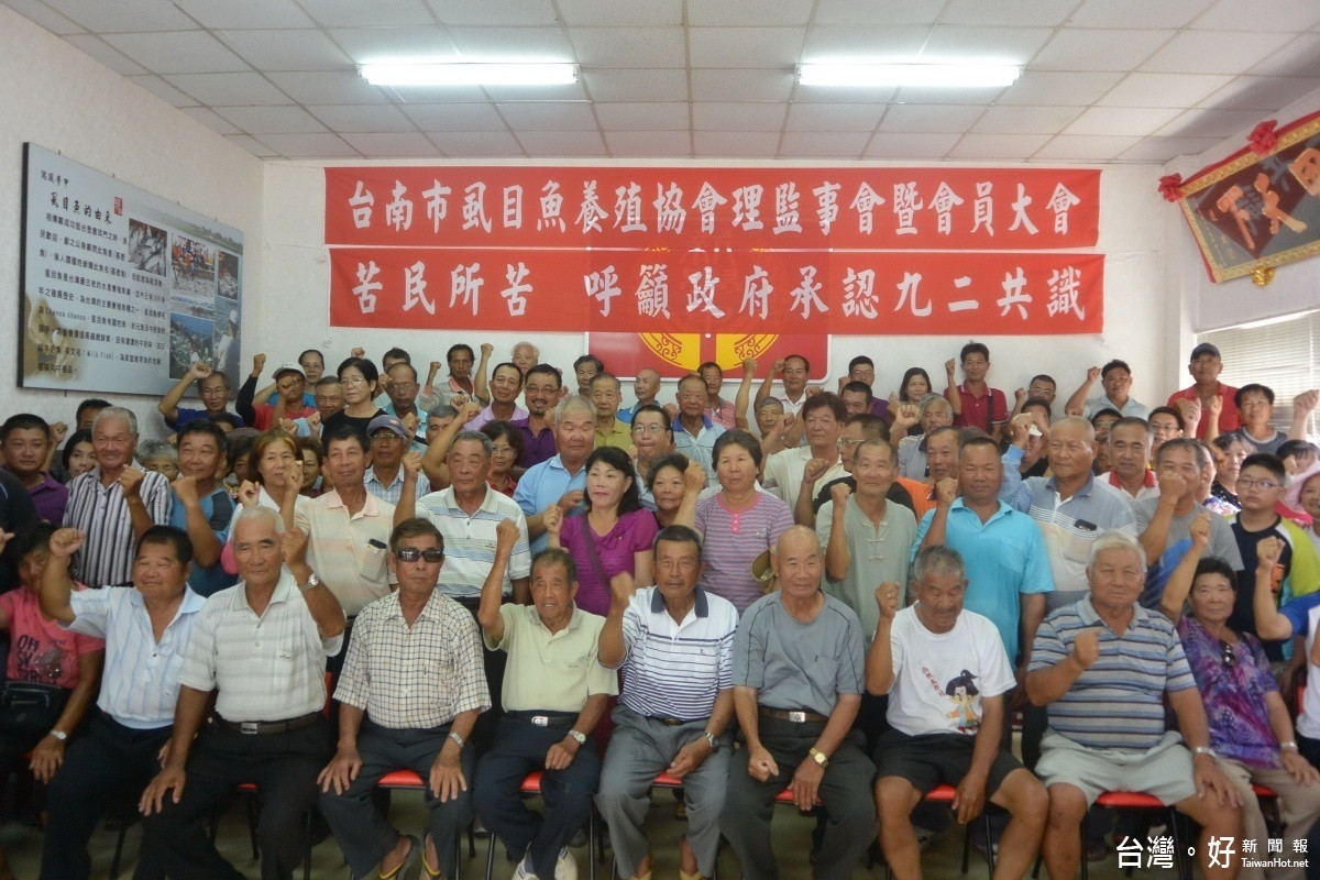 今(1)日漁民節,台南市虱目魚養殖協會召開契作理監事暨會員大會,150位漁民踴躍出席,由於今年與大陸契作暫停、加上年初寒害,已經嚴重衝擊到台灣漁民的生計,面對緊張的兩岸關係,漁民更是憂心忡忡,齊聲呼籲政府苦民所苦,承認九二共識,理事長王文宗呼籲,希望執政當局能聽見漁民聲音,兌現就職前向人民承諾會維持現狀,兩岸關係會越來越好。會中還決議推派15名資深漁民組成千歲團九月赴大陸爭取與台灣的虱目魚契作。