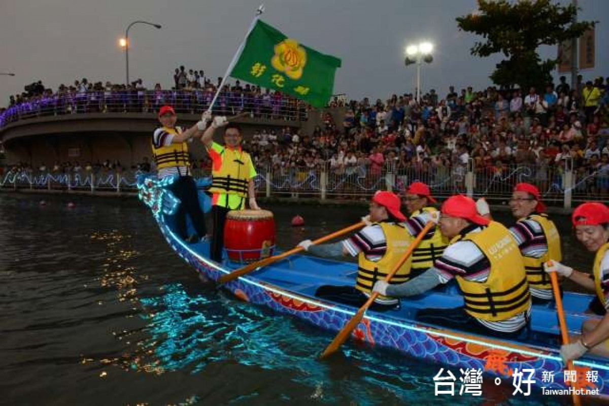 夜間龍舟競賽,點亮福鹿溪,超美麗!。(圖/彰化縣政府提供)