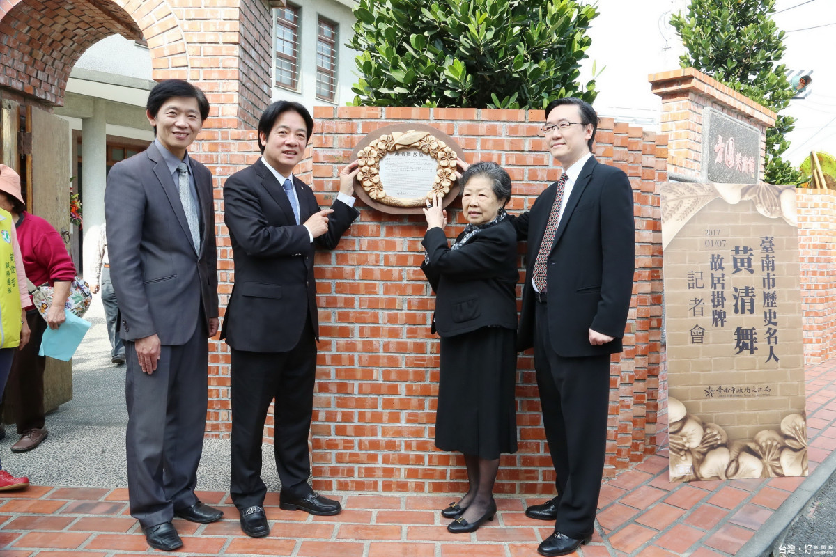 市長賴清德表示,列名台南市政治類歷史名人的黃清舞(1905?1994),號遂園,既是醫生,又是政治家,是將軍鄉的傳奇人物;他在家鄉懸壺濟世,救人無數,戰後他受命擔任國民政府地方接收委員,並擔任官派將軍鄉首屆鄉長,但仍於公暇持續行醫,任內極少出席宴會場合以免延誤看病救人,鄉里傳為美談。黃清舞曾五度當選將軍鄉長,擔任鄉長長達15年,他擅長書法、音律,藏書豐富,才華洋溢、學養俱佳,為難得一見的人才。