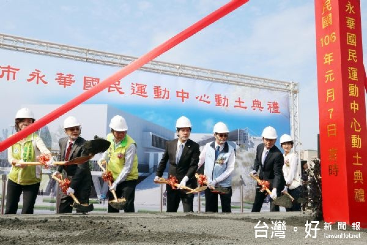 市民朋友引頸期盼的臺南市首座室內複合式運動中心「 臺南市永華國民運動中心」訂於106年1月7日上午11時30分 於體三基地(國立臺南生活美學館旁)舉行新建工程動土典禮, 由安平國中結合劍獅鼓隊、武術隊及舞蹈隊的鼓術表演熱鬧開場, 藉著劍獅的戰鼓鼓聲,展現祈福避邪、威震八方的氣勢,為動土典禮 揭開序幕。市長賴清德親自主持典禮,教育部體育署副署長王水文、 教育局長陳修平、工務局長蘇金安、民意代表及地方仕紳等共同出席 祈福祭拜及擔任奠基動土貴賓,現場氣氛熱鬧可期。