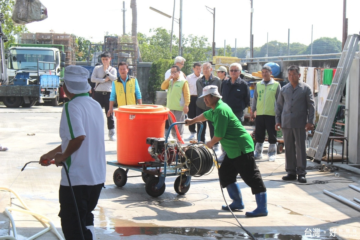 雲林縣長李進勇實地視察禁運禁宰和場區消毒等抑制禽流感疫情蔓延作業情形。(記者簡勇鵬攝)