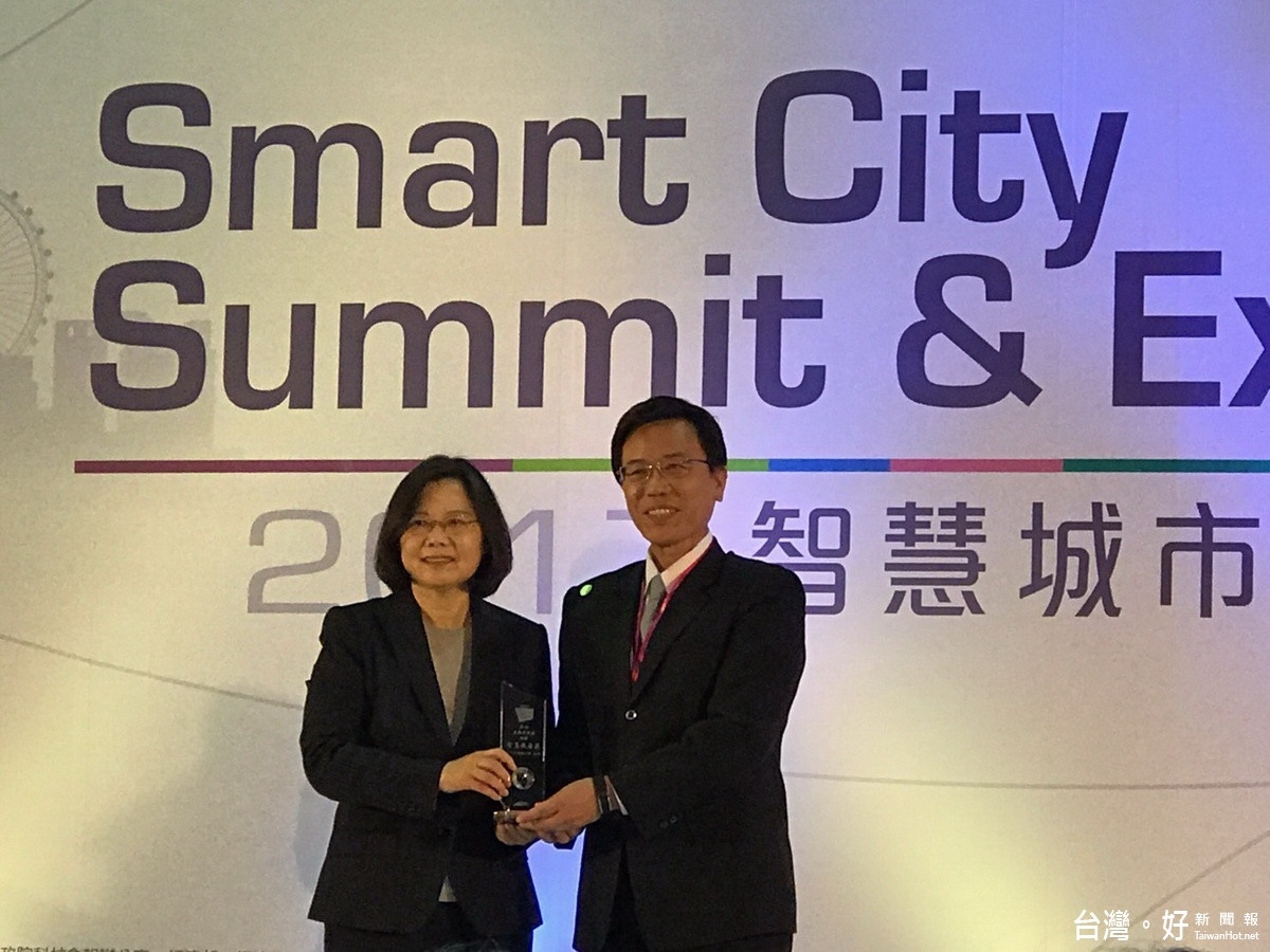 臺南市政府首度參加由台北電腦公會主辦的「2017智慧城市展」,以「OPEN臺南1999計畫」主題,在「智慧城市創新應用獎」競賽類別中獲獎,21日由副市長張政源代表接受總統蔡英文頒獎,將臺南市智慧便民之創新成果完整呈現。