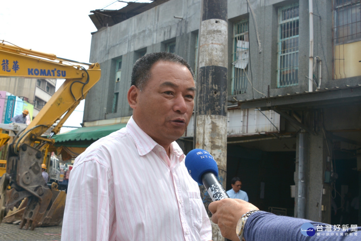 台南市議員謝財旺看到學甲公有零售市場最後一批老舊建物今日拆除後說,學甲區整體市容會更整齊漂亮,繁榮學甲的事指日可待。(記者/黃芳祿攝)
