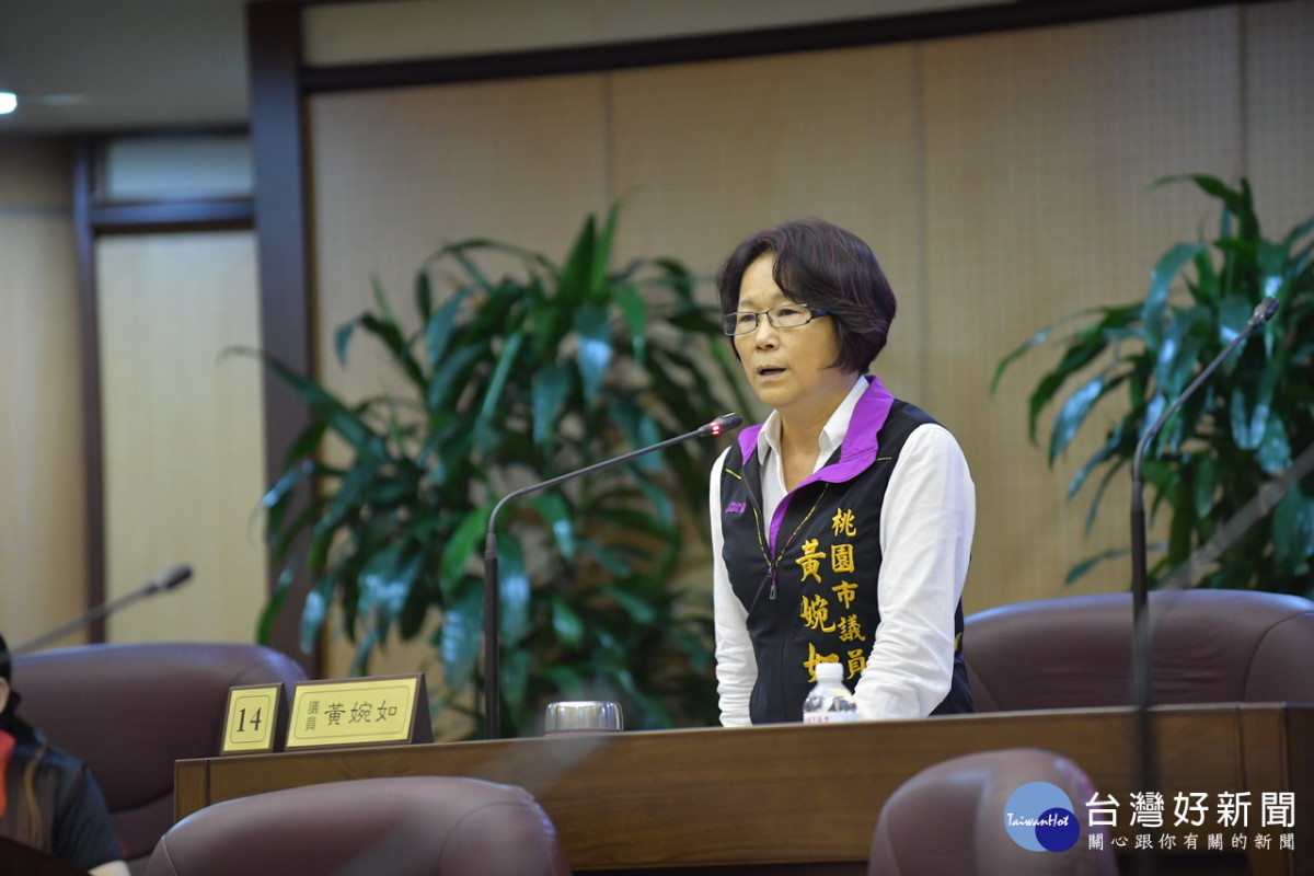 ▲市議員黃婉如:不受歡迎的路樹,釀臭氣、飛絮等公害,應建檔管理。(圖/桃園市議會提供)