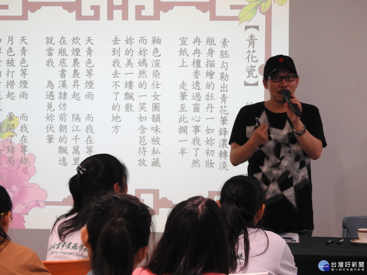 臺北市私立靜心國民中學於(4)日舉辦兩岸四地文藝營活動,邀請了知名作詞家方文山以「當個有故事可以說的人」為題,對來自兩岸四地近60位國中生演講。