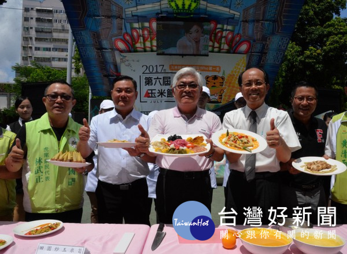 虎尾玉米節8日在古蹟涌翠閣旁登場,縣長李進勇、文化處長林孟儀、農業處副處長許永瑜、虎尾鎮長林文彬及多位鎮代均蒞臨,現場除有玉米創意料理競賽試吃,還展示不同的玉米品種,以及玉米造型溫度計DIY等活動,一早就擠滿熱情參與的民眾,在古蹟裡品嚐玉米別有一番風味。