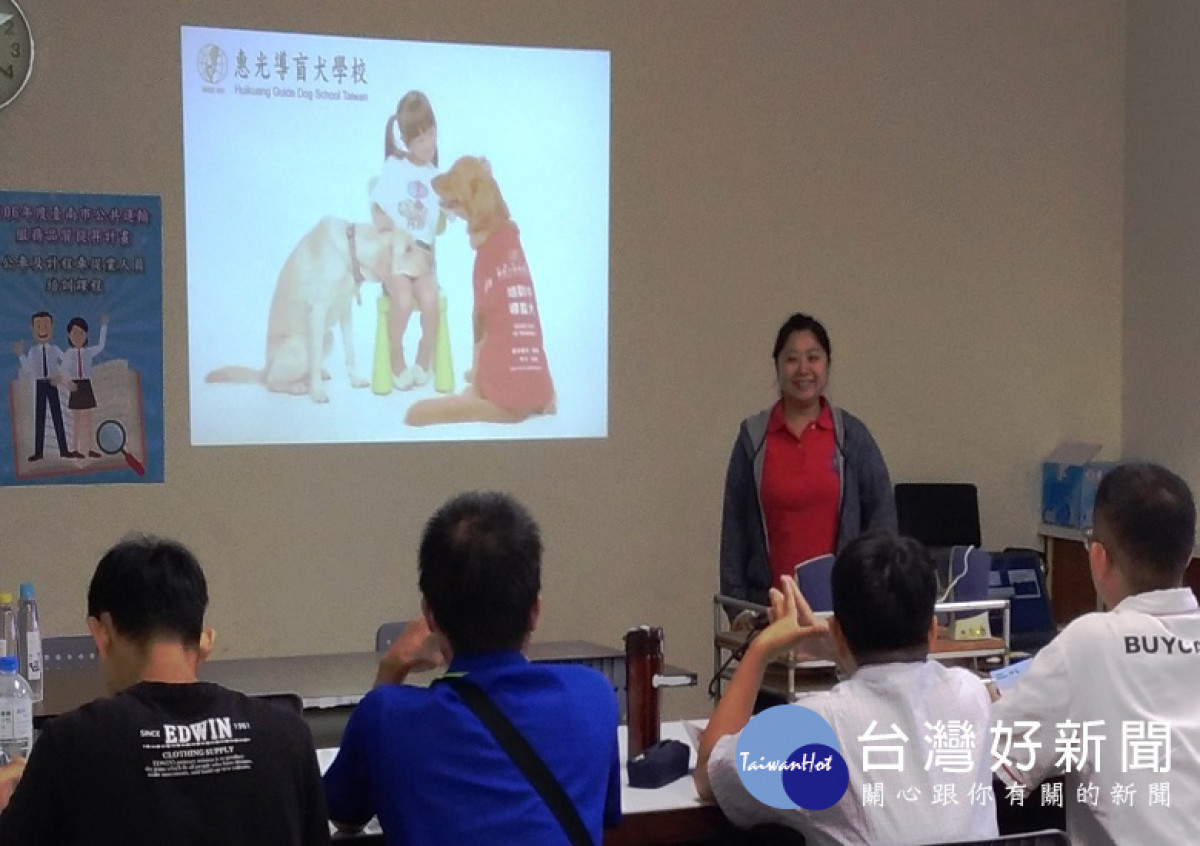社會局邀請「財團法人惠光導盲犬教育基金會」與「臺灣導盲犬協會」為本市公車司機進行宣導並教導認識導盲犬,曾經服務過視障者與導盲犬的司機阿財分享:在服務過程中經常會遇到一位年輕的視障者和陪伴的導盲犬,原本他也擔心導盲犬上公車後會對陌生人吠叫,但是後來發現導盲犬非常友善,只是靜靜的陪伴主人,專業的引導主人上下車,既乾淨又乖巧。阿財也分享,因為感受到身障者的不便,他會特別等狗狗與視障者都就坐定位後才開車,並提醒車內乘客不要干擾導盲犬,也貼心提醒乘客在人多時要小心不要踩到導盲犬。