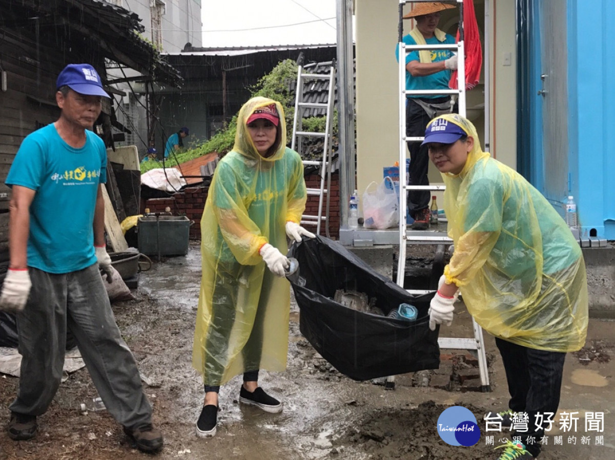 衡山行善團幫助台南市安南區高齡85歲的許阿公裝貨櫃屋,14日完成水電工程、熱水器與馬達加裝,因雨勢關係將再擇日完成屋頂隔熱浪板,台語人氣女歌手陳思安親臨現場加入行善行列,給許阿公加油打氣。