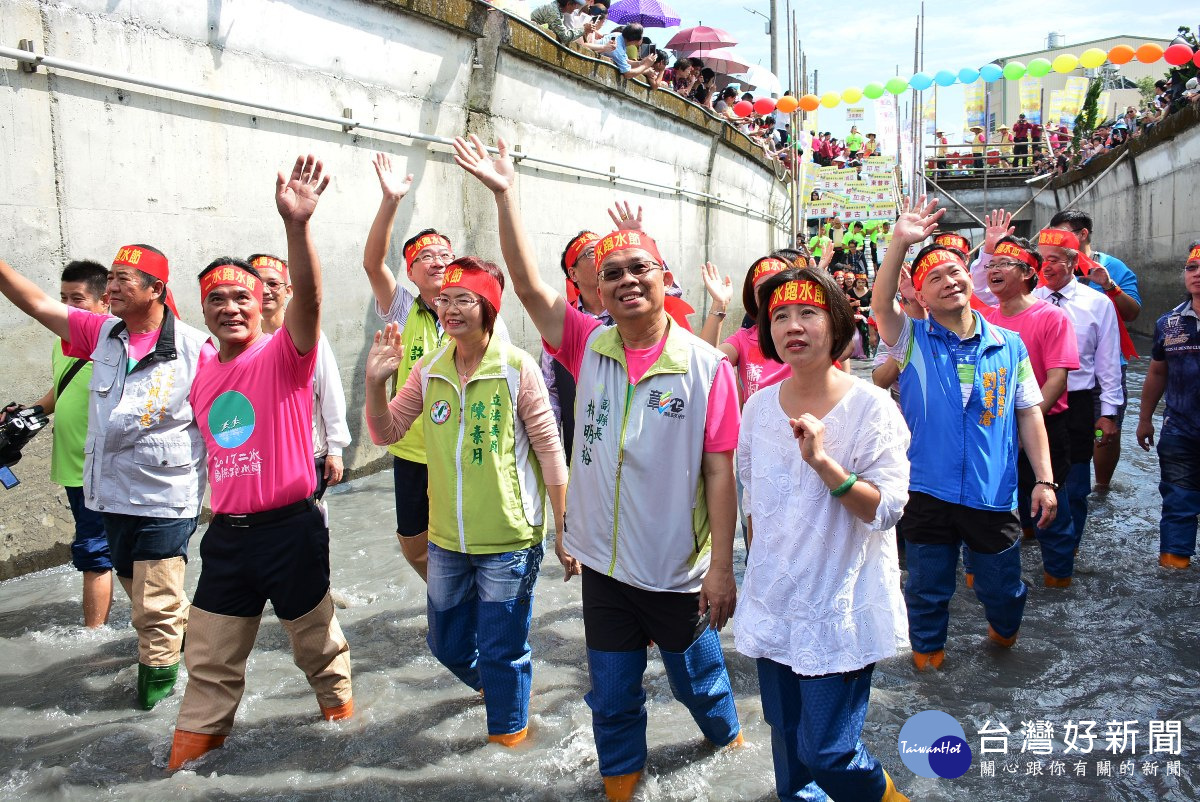 彰化縣年度秋收最盛大民俗文化慶典活動「就是愛水水─2017二水國際跑水節」, 4日上午在二水鄉熱烈登場。彰化縣文化局長陳文彬裝扮「河伯」引水祭祀,與帶領祈福的官員士紳們齊聚到八堡圳跑水,現場數百位在地民眾,在河堤上圍觀,另外有來自世界各國學生擔任天女散花及跑水大使,讓這場文化慶典更具國際性。