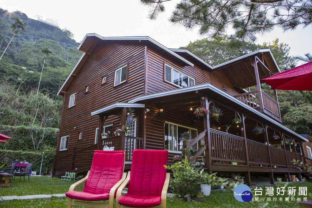 古坑華山幸福咖啡檜木屋的陽光早餐有香草陪伴。