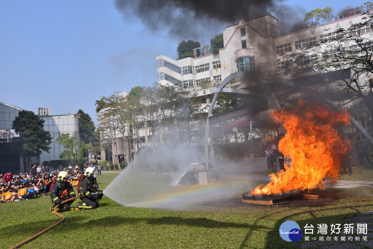 中和公所表示,於現場有公所與消防局合作設置的宣導攤位,讓南山中學師生於觀摩參演之餘更進一步地建立防救災之基本知識,讓防災的種子能夠向下扎根,達到寓教於樂之效果。