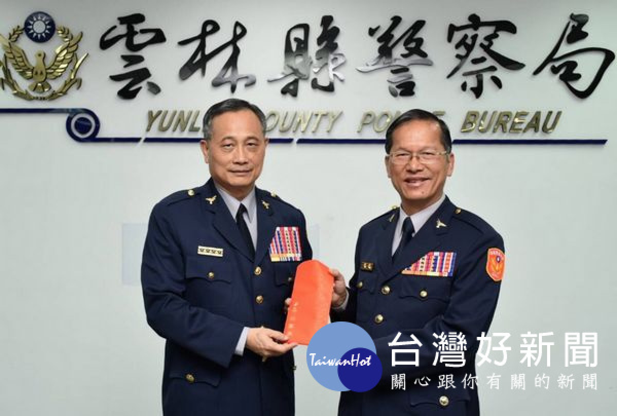 警政署長陳家欽蒞臨雲林縣警察局頒發獎勵金並聽取工作簡報,肯定縣警局的優異表現,由許錫榮局長代表受獎。(記者陳昭宗拍攝)