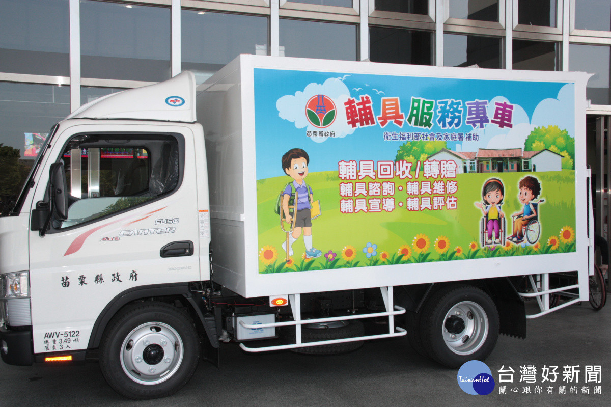 縣府雖在苗市設立一處輔具資源服務中心,但因幅員廣闊,偏遠地區行動不便民眾須長途跋涉,甚為不便,為提供身障朋友或失能民眾更友善的生活環境,去年向衛福部社會及家庭署公益彩券回饋金申請補助二百萬元,購置一輛輔具服務專車及相關設備,巡迴下鄉服務,讓行動不便朋友的生活更加便利。