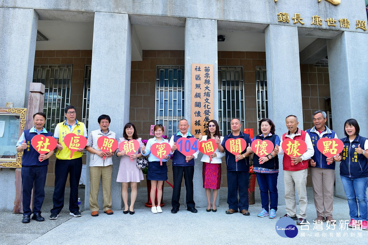 苗栗縣竹南大埔文化發展協會社區照顧關懷據點18日上午舉行揭牌儀式,縣長徐耀昌表示,設立社區照顧關懷據點是他上任以來推動「幸福領航計畫」中的一項施政重點,目前已達104個,未來也將繼續努力,今年目標是達到111個點,讓地方長輩能就地安老。