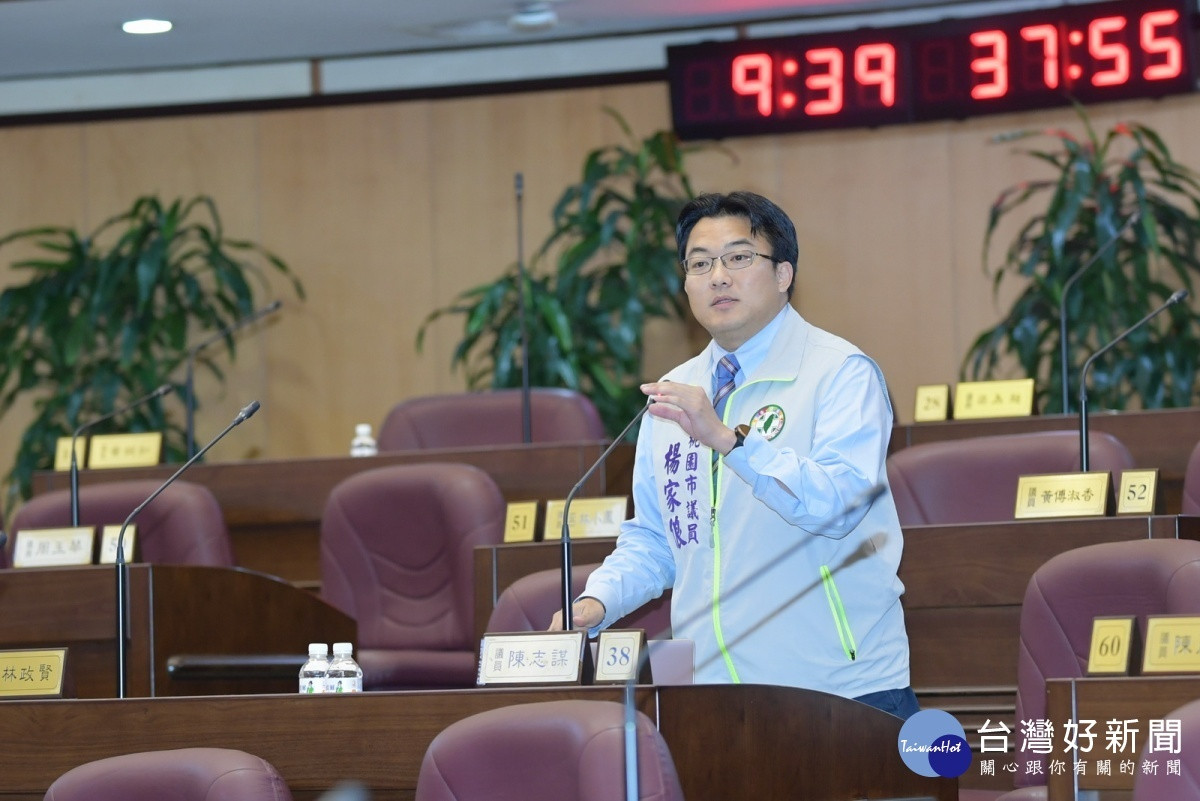 市議員楊家俍針對平鎮建設目前計畫進度質詢。(圖/桃園市議會提供)