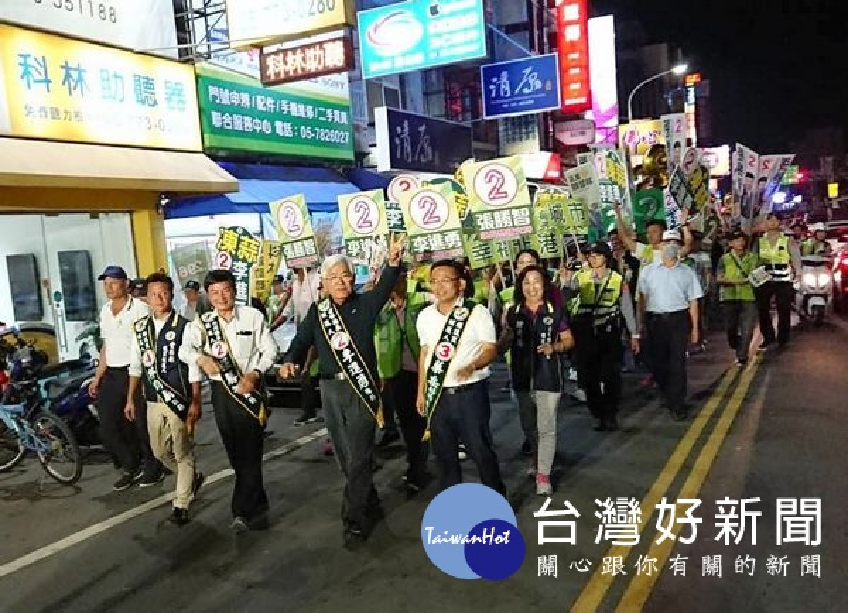 九合一選舉決戰進入最後倒數,爭取連任的雲林縣長候選人李進勇繼週末北港大型造勢晚會,緊鑼密鼓接續舉辦北港文化之夜掃街拜票,帶領鎮長候選人張勝智、縣議員候選人蔡岳儒及林昀蔚等正直團隊傾盡全力催票,感謝北港鄉親4年前的愛護並懇請鄉親繼續支持,共同打造幸福宜居的好故鄉。