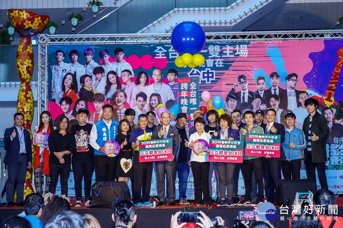 「2019台中跨年晚會」雙主場,分別是后里現場「2019依舊幸福 花現台中跨年晚會」,於今日晚上6時在麗寶樂園第二停車場舉行;台中現場「搖滾台中 2019台中跨年音樂祭」今日下午1時起在圓滿戶外劇場暨文心森林公園舉辦。