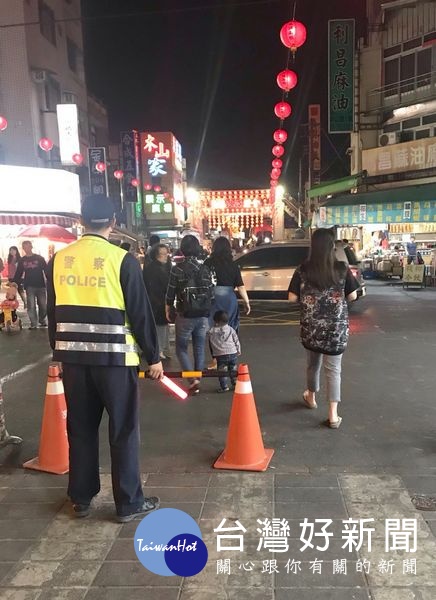 因應228連假一波賞燈高潮,北港警方派員於各瓶頸或易壅塞路段加強疏導,呼籲遊客加以配合,以維交通秩序與順暢。(記者陳昭宗拍攝)