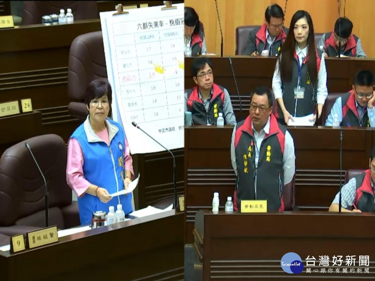 市議員劉茂群指出,大量解雇造成勞工心慌慌,工業產值常居全台之冠,失業率卻是六都最高,勞動局應提出解決之道。(圖/翻攝桃園市議會網站)
