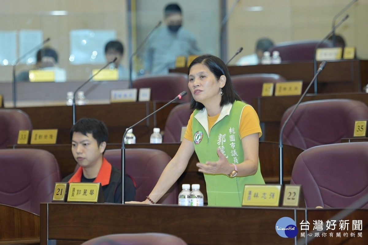 市議員郭麗華在市政總質詢中,針對敬老愛心卡擴大使用範圍、關懷據點志工補助、南美河濱公園設置天幕球場提出數項建議。(圖/桃園市議會提供)