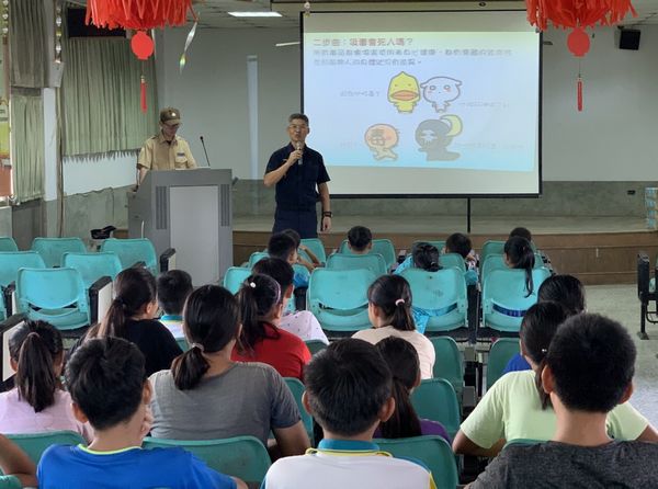 宏仁所長蔡瑞彬主動走進校園宣導防毒、拒毒及反暴力與配戴安全帽等基本交安知識,希望學童與家長都能重視行的安全。