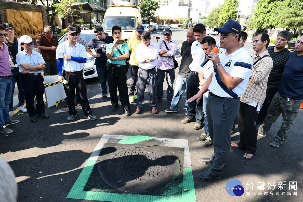 人手孔蓋是道路常見的一部分,也是交通隱形殺手。為此,台中市政府建設局日前於車流多且位於市區中心的朝富路,辦理孔蓋防滑觀摩會,作為孔蓋抗滑試辦地點,邀集各管線單位、工程設計與施工單位,以及中興大學教授黃建維、高苑科大教授林登峰共同探討孔蓋抗滑課題,盼找出成本與安全平衡的最佳檢測維護模式,提供各孔蓋維護機關參考。