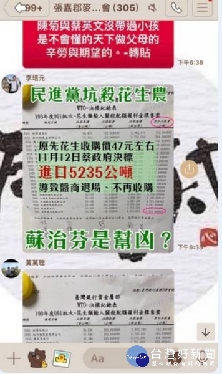 立委蘇治芬為遏止不當選風,展示雲林縣工商發展投資策進會副總幹事李培元等人,在網路上散播蘇治芬是花生進口幫兇,侵害選舉公平性,將向雲林地檢署送件提告。