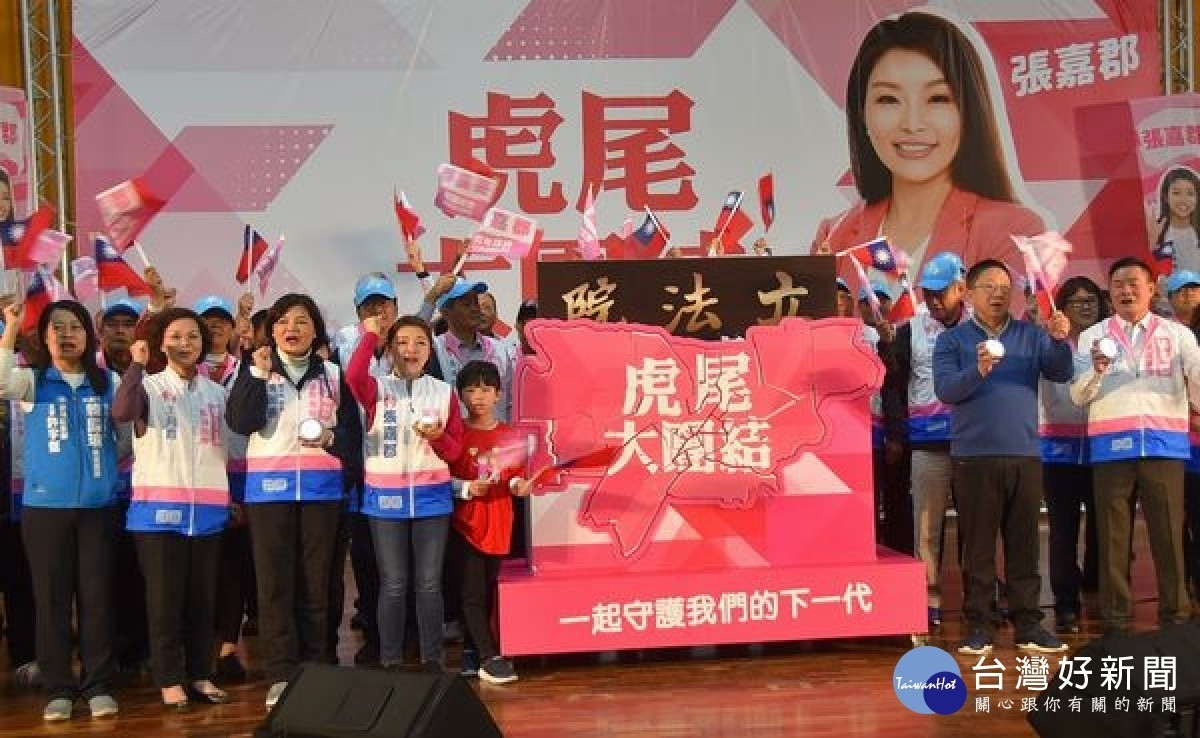 立委候選人張嘉郡在虎尾廳舉行「虎尾大團結力挺張嘉郡」暨虎尾鎮競選總部成立大會,縣長張麗善、媽媽王月霞及「神力女超人」立委許淑華等到場力挺,展現大團結的氣勢。