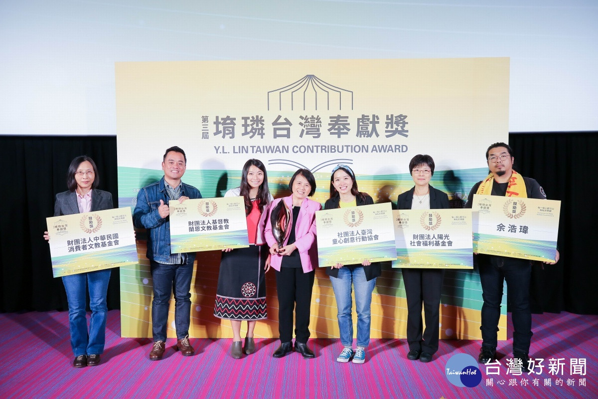第三屆堉璘台灣奉獻獎頒獎典禮17日於新北市淡水美麗新淡海影城舉行,眾所矚目的本屆堉璘台灣奉獻獎,頒給了第一社會福利基金會執行長賴美智,她在頒獎典禮上向林堉璘宏泰教育基金會致謝,第一基金會會繼續努力下去。同時獲頒堉璘台灣奉獻鼓勵獎的DFC秘書長許芯瑋,以及青藝盟盟主余浩瑋,在領獎時都表示,謝謝基金會的多元甄選標準,讓默默做事的人,有被肯定的一天。