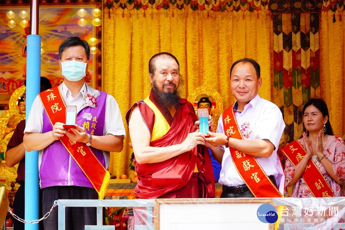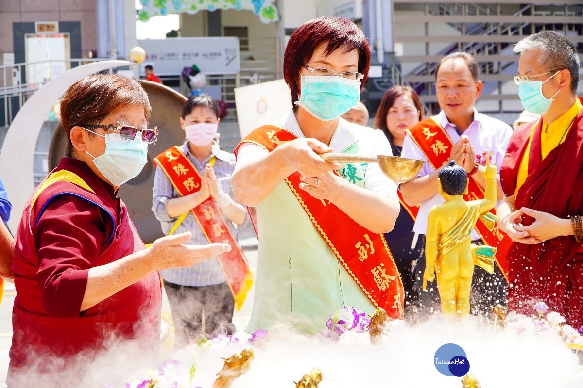 民政處長賴致富表示:今天代表王惠美縣長來佛殿祈福,目前台灣連續多天零確診,大家不要掉以輕心,希望諸佛菩薩保佑大家身體健康,共霑法益。立委陳素月表示,台灣零確診是民眾配合政府政策希望民眾繼續維持防疫措施,祝福法會圓滿成功。