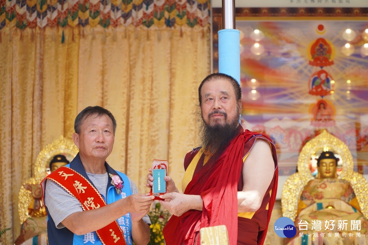 行動佛殿91站雲林口湖鄉,恆性嘉措仁波且感謝雲林縣長秘書呂昆興、下崙村長王勝瑋、崙中村長謝文棋、蔡孟真議員助理邱月鳳、福安宮王榮裕主委蒞臨祈福法會