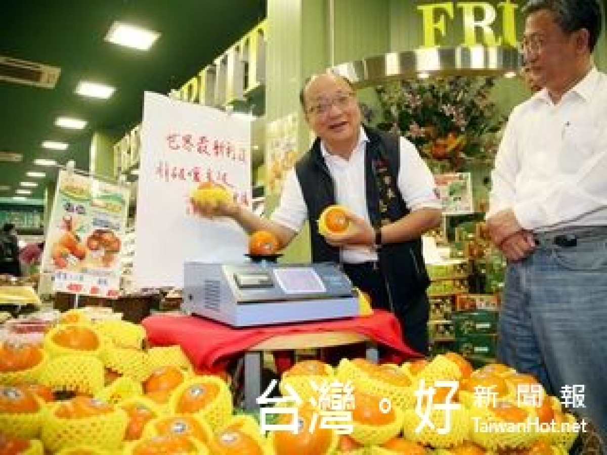 甜柿一斤兩元?副市長徐中雄與東勢區農會理事長徐光裕痛批民進黨最近發放的水果月曆文宣「根本是睜眼說瞎話」,要農民覺醒,不要再被民進黨騙走選票,一定要力挺農家子弟、客家女婿的江啟臣。