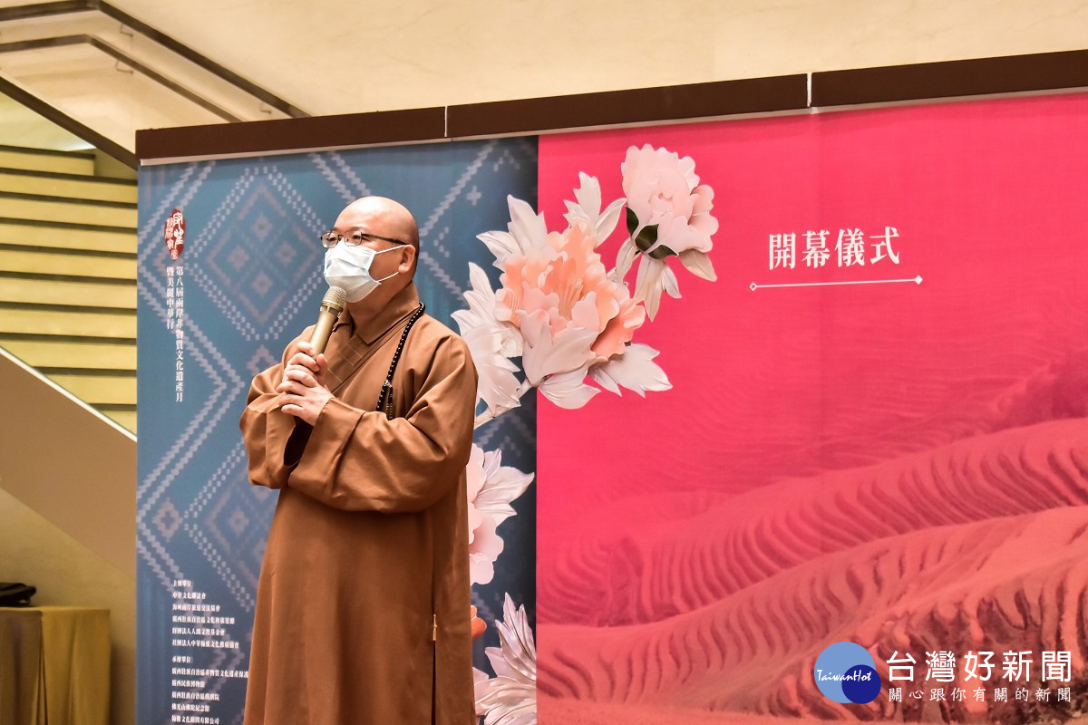 佛光山住持心保和尚為在場貴賓獻上歡迎之意, 並表示只要多交流、多包容,就可以把文化遺產的特質發揮得更好。期待疫情過後,大家可以親自走入廣西,真的去體會她的內涵。