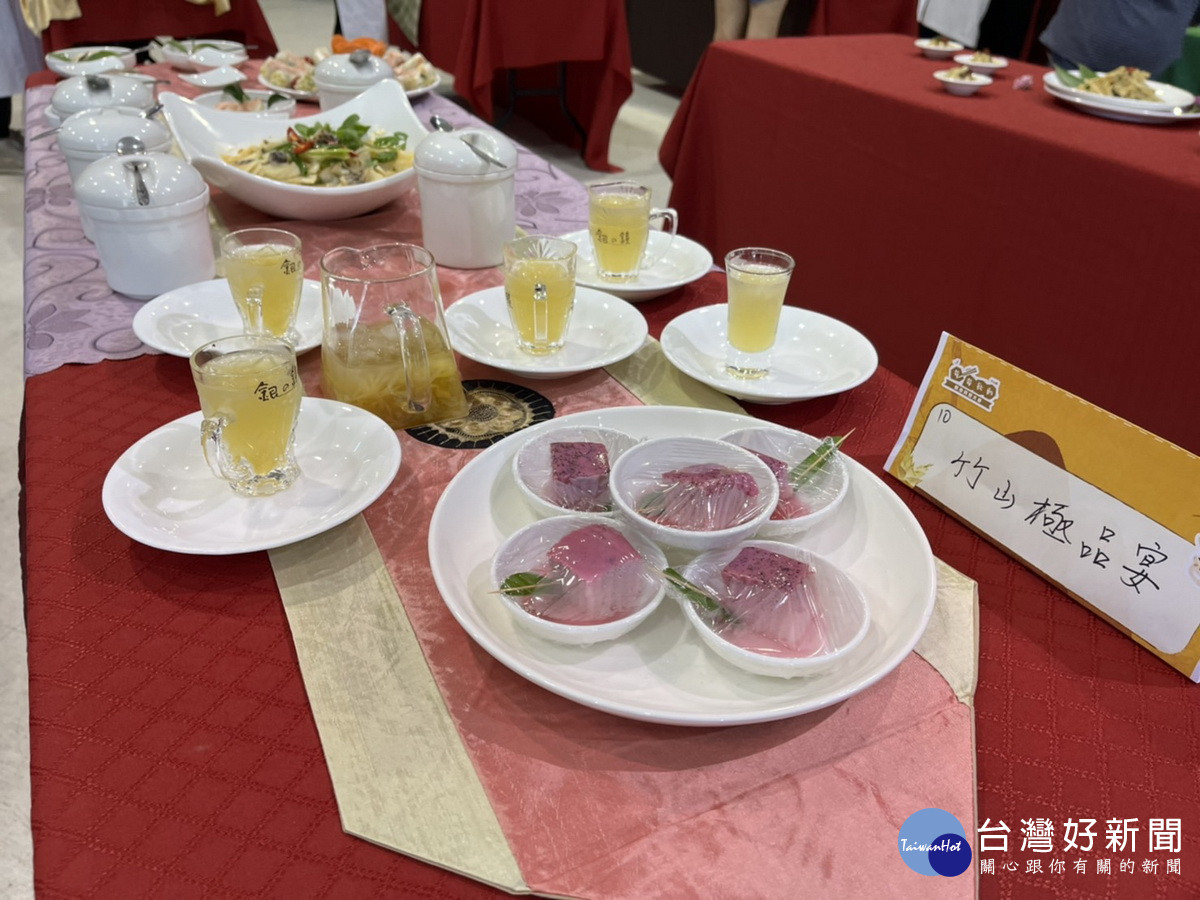 竹山鎮公所舉辦的「2022竹山鎮筍筍欲動創意料理大賽」決賽,17日於竹山鎮公所熱鬧展開,比賽區分為「專業組」、「社會組」及「學生組」等三組進行評比,經過16日的初賽,最終由每組別各5支隊伍展開激烈的廚藝對決,現場也免費發放筍乾爌肉伴手禮給予之前參加APP活動的民眾,讓民眾在欣賞激烈的廚藝對決外,還能品嘗到熱騰騰的在地麻竹筍料理。