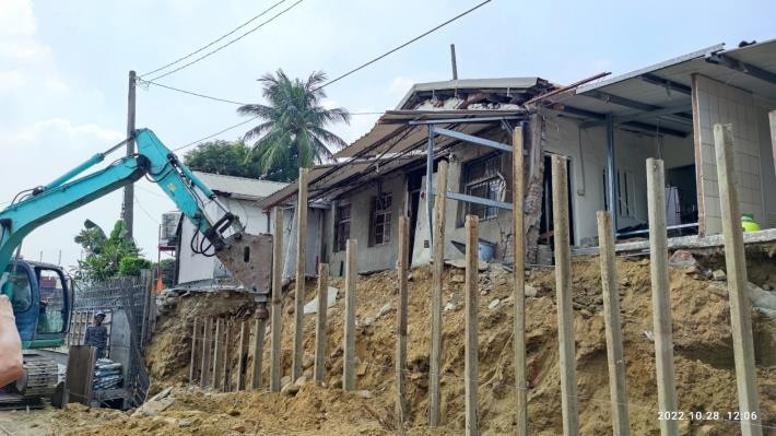 台南市政府在事件發生後,要求施工廠商盡速完成擋土施設,並將已受損房屋拆除,以避免可能颱風侵襲造成更大災害;經施工廠商連日搶工,已於10月 28日完成鋼軌樁打設,並於當日下午將房屋危險部分拆除完成。