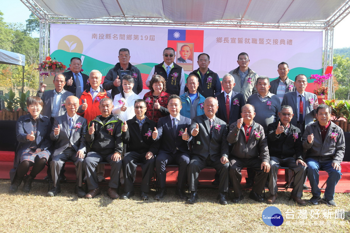 名間鄉第19屆鄉長暨22屆村長就職典禮,25日移師親子共融公園舉行,由議員轉換跑道的陳翰立宣誓就職,並頒贈當選證書予23位村長,陳鄉長強調一線服務不打折,未來公所將連結各村落的資源與需求,打造新名間。