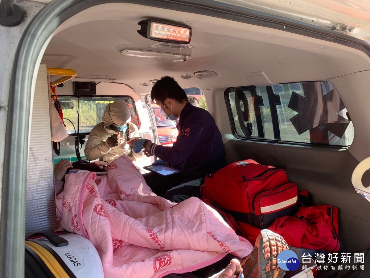 金子山搜救組則於111年12月31日晚間於山區紮營,隔日晨間拔營後繼續前往救援,並於次日16時50分接觸傷者,因山區天候不佳,無法出動直升機搭載,為利搶救時效,於112年1月2日以人員背負傷者方式下撤,另增派第三梯次2名山搜人員前往協助接駁,惟山區氣候不佳,雨勢過大及濃霧影響視線,行經多處崩坍地,沿路溼滑難行,險象環生,步行下撤進度緩慢,傍晚行經一處大崩壁處,考量若強行通過恐有滑落之危險,故就近於大崩壁旁安全處所附近紮營,所幸1月3日上午山區天候稍轉晴,為把握救援時效,即刻申請直昇機吊掛救援,於9時16分完成吊掛,順利卸載於同富起降點,再由玉山消防分隊救護車載送至竹山秀傳醫院就醫,本案在內政部空中勤務總隊、警消人員及山搜義消通力合作下順利圓滿完成任務。