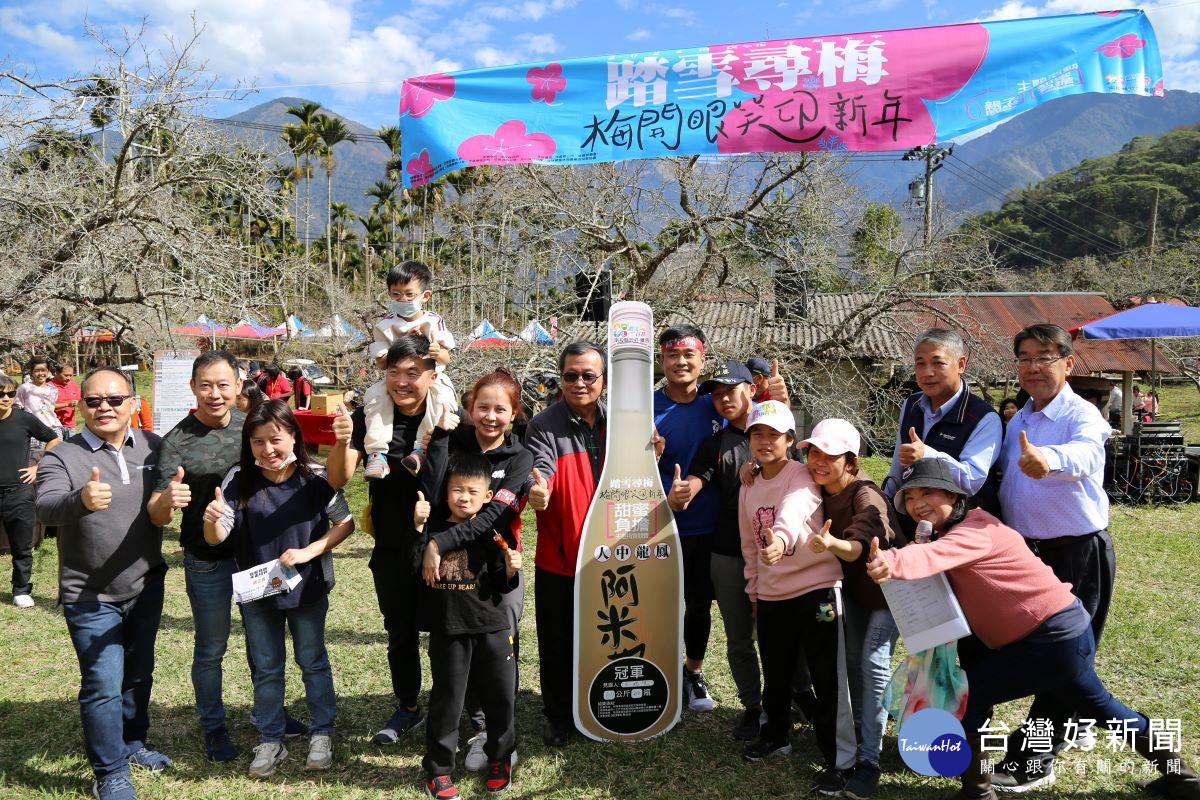 來自台中烏日的楊振章先生楊振彰、林千祝夫婦獲得冠軍,獎賞信義鄉農會-阿米怒小米風味酒。(圖片/信義農會提供)